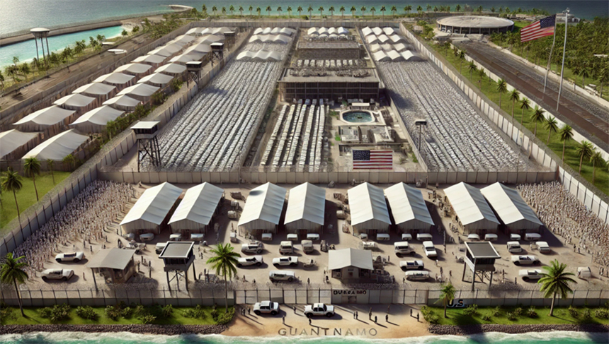 El presidente de Estados Unidos, Donald Trump, firmó este miércoles una memorando para que el Pentágono y el Departamento de Seguridad Nacional habiliten 30.000 camas en la base naval de Guantánamo (Cuba) con el fin de detener a inmigrantes indocumentados.