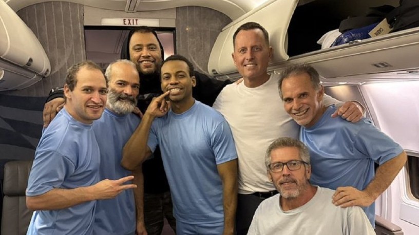 «Nos ponemos en marcha y nos dirigimos a casa con estos seis ciudadanos estadounidenses. Acaban de hablar con Donald Trump y no podían dejar de agradecerle», escribió Grenell en su cuenta de X. El posteo estuvo acompañado de una fotografía conjunta con los liberados, de los que no se precisaron ni su identidad ni los cargos específicos por los que estaban siendo procesados en la nación suramericana.