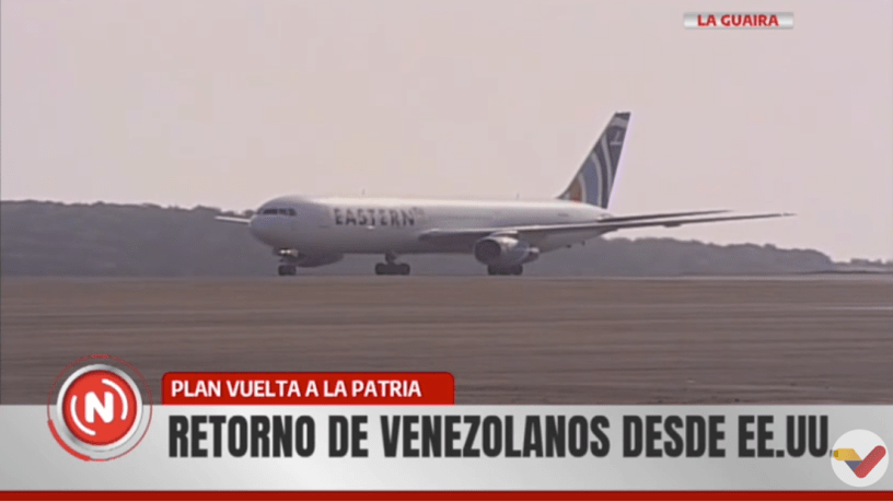 Este viernes 11 de abril arribó al Aeropuerto Internacional Simón Bolívar de Maiquetía, en La Guaira, un avión proveniente de los Estados Unidos con 191 migrantes venezolanos, de los cuales 16 son mujeres, 175 hombres y dos ciudadanos que registran captura internacional de Interpol, así lo informó el ministro del Poder Popular para Transporte, Ramón Velásquez Araguayán, quien ofreció detalles sobre los connacionales recién retornados mediante el Plan Vuelta a la Patria.