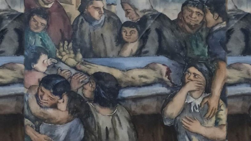 Fuente Imagen: Internet. Brazo de Galán expuesto en El Socorro. (1942). Pedro Nel Gómez. Acuarela sobre papel. Se encuentra en la Casa Museo Pedro Nel, en el barrio Aranjuez de Medellín. Foto: Felipe Osorio V.