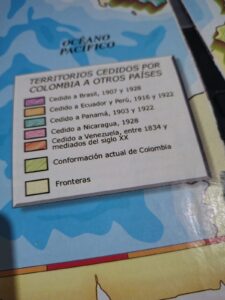No es la primera vez que nuestra patria sufre perdidas territoriales frente a sus vecinos; para no ir muy lejos, recordemos que, como consecuencia de la guerra de los mil días, Colombia perdió el departamento de Panamá: “ante un burdo montaje de insurrección organizado por los Estados Unidos, acompañado de ejércitos que se dirigían a ambas costas, el cual fue rechazado por Colombia con apenas débiles protestas. Ni siquiera se rompieron relaciones con Estados Unidos, país que rápidamente negoció un tratado de redacción unilateral con las nuevas autoridades para finalizar la construcción del canal y conservarlo a perpetuidad. En 1922, en el tratado Urrutia- Thompson, Colombia reconoció a Panamá y se legalizó el robo del siglo (color azul en el mapa), (Foto 2). (Mal tratados, revista Credencial historia, julio 2000, David Roll y Miguel Borja, páginas 26 a 29).