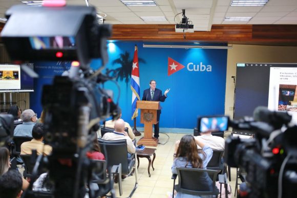 El jefe de la diplomacia cubana ofreció este miércoles declaraciones a la prensa nacional y extranjera acreditada en La Habana, en la sede de la Cancillería, en las que dijo que esta sesión en la AGNU transcurrirá en una coyuntura internacional caracterizada por el reforzamiento del bloqueo contra Cuba, y por la aplicación por parte del gobierno de los Estados Unidos de una política exterior sumamente agresiva e intimidatoria, incluso hacia sus aliados más cercanos.