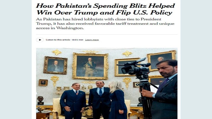 El New York Times (NYT) publicó un reportaje titulado « Cómo el aumento del gasto público en Pakistán ayudó a convencer a Trump y a cambiar la política estadounidense », cuya idea principal es que el cabildeo desempeñó un papel importante en el rápido acercamiento entre Estados Unidos y Pakistán . Reconocen que factores ajenos al control de Pakistán también fueron significativos, como la negativa de India a aceptar la promesa de Trump de mediar en el alto el fuego de primavera o a hacer concesiones comerciales importantes, pero argumentan que el acceso obtenido mediante el cabildeo aceleró enormemente este proceso.