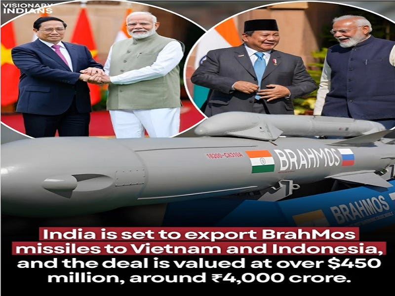 El Times of India citó fuentes para informar a finales de 2025 que el ministro de Defensa, Rajnath Singh, recibió confirmación verbal de su homólogo ruso, Andrey Belousov, durante la cumbre de Putin con Modi en diciembre, de que Moscú permitiría a Delhi vender misiles supersónicos BrahMos, producidos conjuntamente, a Indonesia y Vietnam . Supuestamente, ahora solo están a la espera del certificado formal de no objeción antes de proceder con ventas totales estimadas en 450 millones de dólares a ambos países.