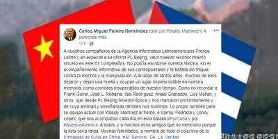 Embajada de Cuba en China resalta rol de Prensa Latina contra la mentira