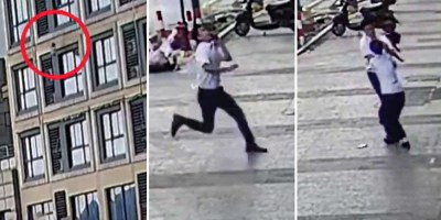 VIDEO: Un hombre atrapa a una niña que cayó de un edificio en China